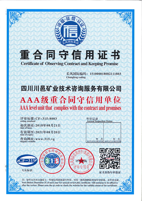 重合同守信用證書